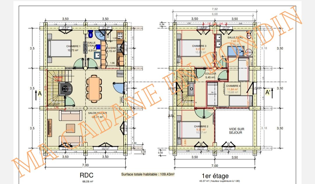Modèle en fustes de 28/32cm sur une surface de 145m²