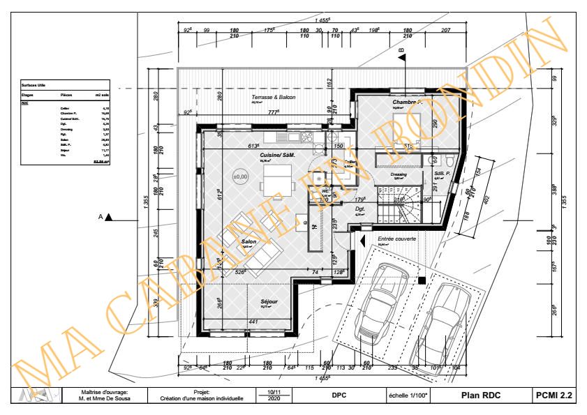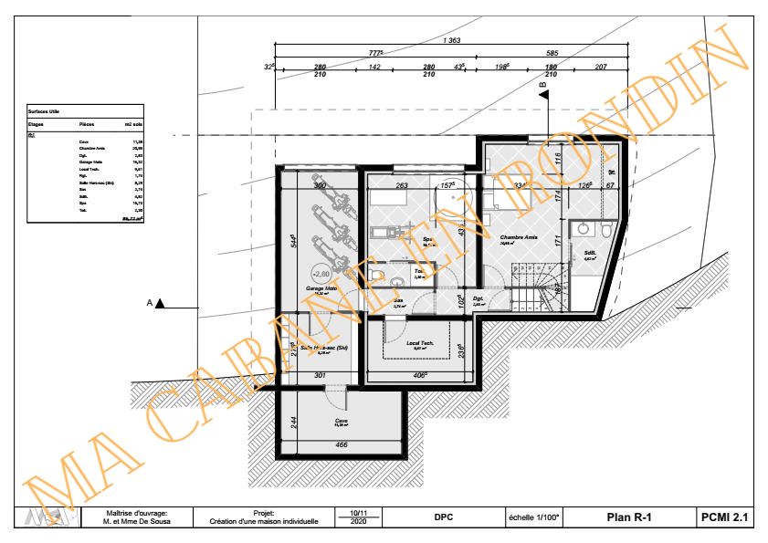( tarif et surface sans le sous sol en beton )